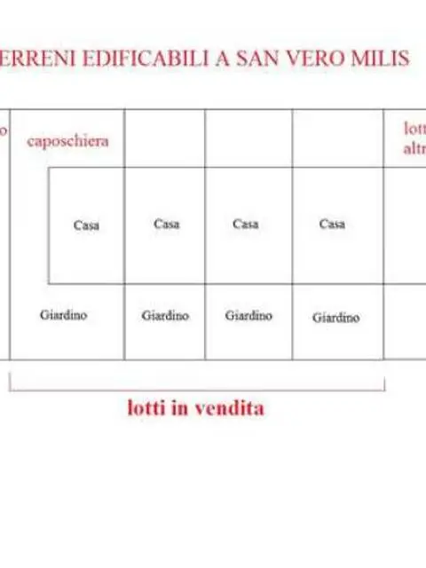 A San Vero Milis piccolo e tranquillo paesino con economia prevalentemente agricola, dieci minuti dalle spiagge e dalla cittadina di Oristano, a due minuti dalla Strada Statale 131, a centro della Sardegna, si vendono lotti di terreno edificabile di varie metrature a partire da euro 20.000. E’ consentito costruire villetta a schiera di oltre 200 mq più seminterrato (opzionale), o anche villetta caposchiera con giardino su tre lati. I lotti si trovano all’esterno del centro storico, in una nuova zona residenziale con sole villette e giardini curati, zona già lottizzata e urbanizzata. Costruibile immediatamente. Il sogno della villetta indipendente con un bassissimo investimento. Foto illustrativa