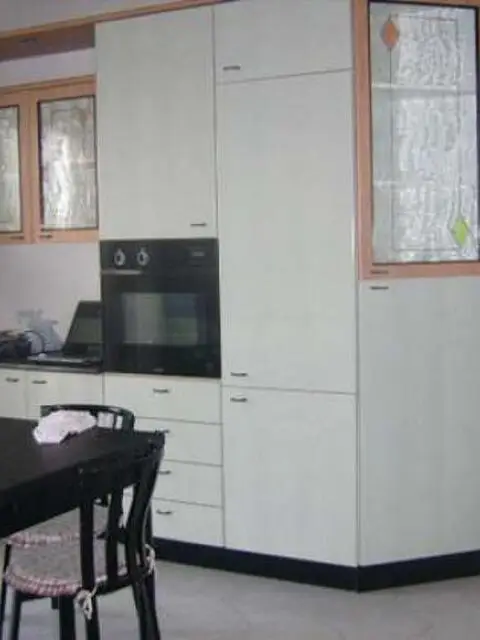 Appartamento 3° P. con ascensore di mq. 90, n. 2 balconi da mq. 7 cadauno, n. 2 bagni, posto auto in cortile privato, vasca e doccia Teuco con idromassaggio plantare, porte di vero legno di cui una vetrata, porta a scrigno doppia anta vetrata, impianti certificati, certificato di agibilita.In caso di acquisto anche di garage di mq. 20, dotato di canna fumaria, bagno, attacco autoclave, aggiungere al prezzo indicato €. 20.000.Classe G; ipe 175,00 Kwh/mq anno.