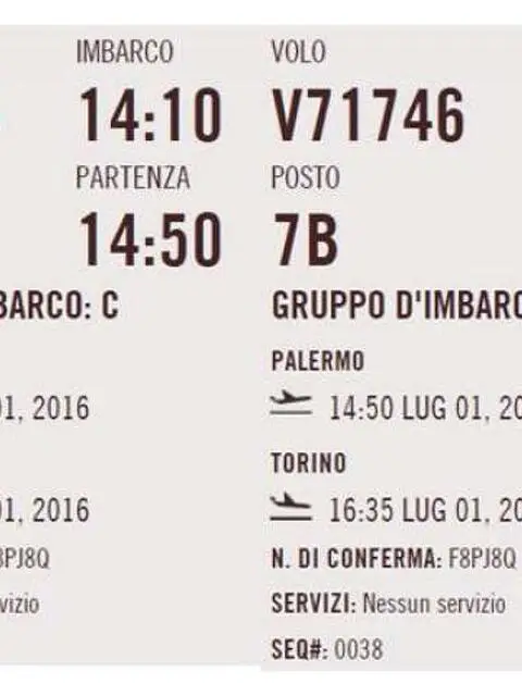 Come da titolo vendo 2 biglietti Palermo- Torino solo andata. Data 1 luglio ore 14.50. E' necessario cambiare i nominativi, quindi affrettatevi. No perditempo