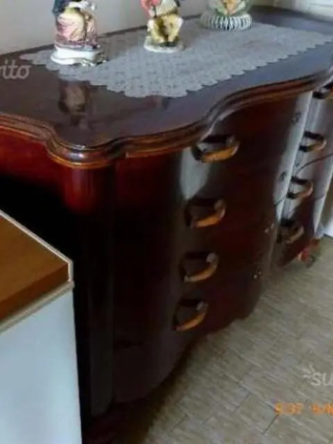 Cassettiera anni 40 50, in legno massello di ciliegio, dotata di ampi cassettoni con maniglie in madreperla e serrature funzionanti, il mobile non presenta scheggiature, segni di umidità e si conserva in ottimo stato trattato con prodotti specifici non necessita di restauro misure 60x140xh98 No perditempo, dò e pretendo massima serietà 3404821089