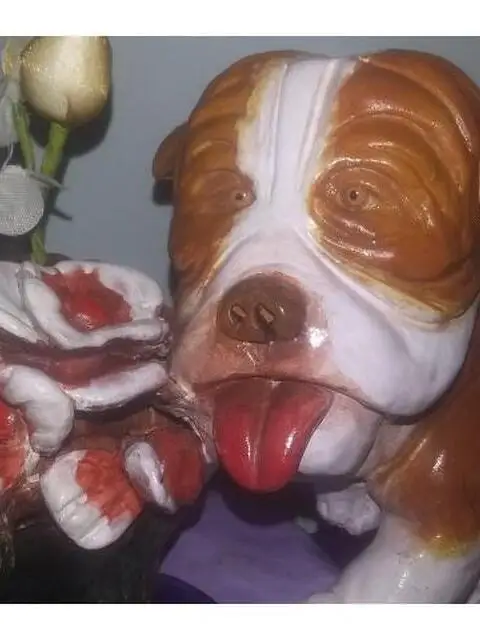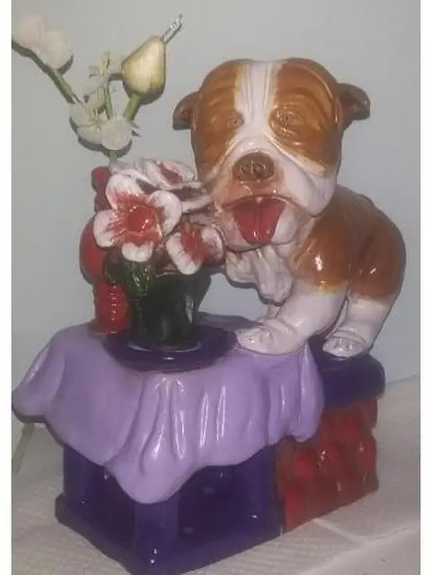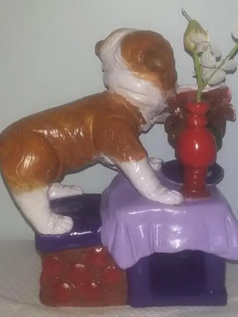 Eccezionale scultura d'autore, AUTORE: Antonio Cariola titolo:il cane sulla tavola che fa la linguaccia TECNICA: terracotta artistica dipinta a mano ,con i colori acrilici unico pezzo nel mondo firma dell'artista incisa sotto la scultura Antonio Cariola MISURA: cm,altezza 23 larghezza cm, 18 approfondita cm,14 italy ESEMPLARE: unico originale Un'ultima di vernice trasparente acrilica è stata applicata all'intera opera d'arte per la protezione e la longevità.e lucentezza