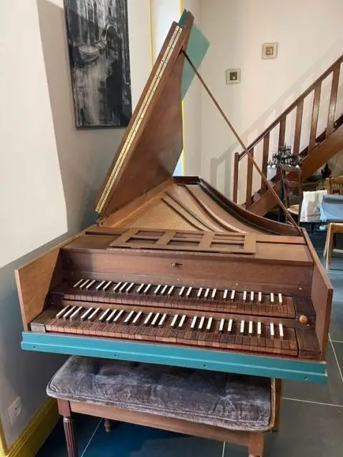 Clavicembalo francese Fonvieille, questo clavicembalo con 2 tastiere, 3 registri + liuto.