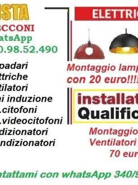 20 € Servizi Roma (Roma) 2025/01/08Sono un bravo elettricista a tua disposizione se hai comprato I tuoi nuovi lampadari o plafoniere e ...