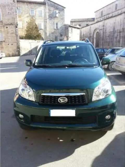 VENDO DAIHATSU J2 TERIOS 4X4, IMMATRICOLATA LUGLIO 2009 CON CAMBIO AUTOMATICO CILINDRATA 1495 BENZINA CON IMPIANTO NUOVO A METANO INSTALLATO A DICEMBRE 2015 I PNEUMATICI SONO 215/65 R16 - QUATTRO STAGIONI - 104000 KM ORIGINALI Tipo di cambio: Automatico Marce: 5 Cilindrata: 1495 cm³ Cilindri: 4 Peso a vuoto: 1095 kg Alimentazione: Benzina Consumo carburante*: 7,9 l/100 km (combinato) 9,5 l/100 km (consumo urbano) 7,0 l/100 km (consumo extra-urbano) Emissioni di CO2*: 186 g/km (combinato) Porte: 5 Posti a sedere: Carrozzeria verde metallizzato Finiture interni: Stoffa Grigio ABS Airbag conducente Airbag laterali Airbag passeggero Alzacristalli elettrici Autoradio CD Cerchi in lega Chiusura centralizzata Climatizzatore Controllo automatico trazione Fendinebbia Immobilizzatore elettronico Servosterzo Specchietti laterali elettrici Tagliandi certificati