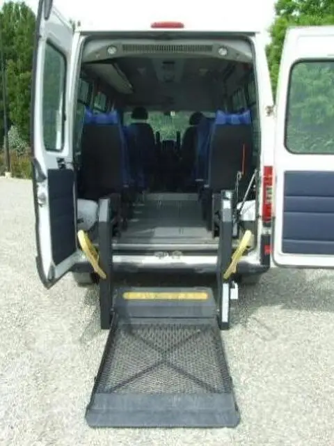 FIAT Ducato PASSO MEDIO TETTO ALTO - TRASPORTO DISABILI Caratteristiche del veicolo Chilometraggio: 450000 Immatricolazione: 10/2005 Tipo di veicolo: usato Carburante: Diesel Potenza: 93 kW / 127 CV Tipo di cambio: Manuale Marce: Colore esterno: Bianco Colore interno: Garanzia: Carrozzeria: 2/3-Porte Cilindrata: Cilindri: Porte: Posti: Equipaggiamenti: Descrizione fornita dal venditore: fiat Ducato Minibus passo 3700 9 posti 2.8 Diesel immatricolato nel Maggio 2004 colore Bianco allestito per il trasportare fino a 3 carrozzelle. Veicolo dotato di climatizzatore anteriore, climatizzatore posteriore caldo freddo canalizzato a tetto, riscaldatore posteriore, fendinebbia, air bag lato conducente, vetri elettrici, chiusura centralizzata. Veicolo tagliandato nel mese di Maggio 2015 in buone condizioni di motore e carrozzeria. Veicolo allestito per trasportare fino a 3 carrozzelle. Sollevatore posteriore completamente automatico di tipo a doppio braccio marca RATCLIEF, selleria in sky lavabile ed igienizzabile con cinture a doppia bretella formata da 4 sedili rotanti lato sx, 2 sedili rotanti e 1 sedile a sgancio rapido lato dx posizionato contromarcia. Pavimentazione vano passeggeri lavabile con guide incassate per il bloccaggio delle carrozzelle (vengono forniti di serie n.3 Kit di arrotolatori autotensionanti). Gradino elettrico consono all'apertura della porta laterale scorrevole lato dx, n. 4 luci al neon posizionate nel vano passeggeri,martelletti rompivetro, mancorrente di ausilio alla risalito lato dx e sx della porta scorrevole completano l'allestimento.