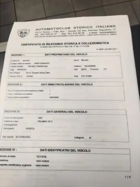 TRIUMPH TR3 cabriolet - bocca stretta Caratteristiche del veicolo Chilometraggio: 44172 Immatricolazione: 06/1957 Tipo di veicolo: usato Carburante: Benzina Potenza: 74 kW / 101 CV Tipo di cambio: Manuale Marce: Colore esterno: Verde Colore interno: Beige Garanzia: Carrozzeria: 2/3-Porte Cilindrata: 1991 Cilindri: Porte: Posti: 2 Equipaggiamenti: Interni in pelle Descrizione fornita dal venditore: -- IVA A MARGINE ART. 36 -- RESPONSABILI VENDITE WEB Sig. Luca Milivinti Tel.(+39) 329 1147714 Sig. Moreno Pettine Tel.(+39) 348 0727432 Sig. Claudio Poncetta Tel.(+39) 339 8454596 Sig. Giovanni Milivinti Tel.(+39) 339 2835434 Vettura disponibile per visione e prova Valutiamo la permuta del vostro usato Possibilità di finanziamento personalizzato Contattaci per ulteriori informazioni I prezzi riportati si intendono escluso trapasso e senza permuta dell’usato. Le informazioni contenute nel sito web sono state compilate con cura affinché possano essere complete, tuttavia, possono contenere errori e/o omissioni. Si declina ogni responsabilità e si consiglia di contattarci per ogni informazione. -- IVA A MARGINE ART. 36 -- ISCRITTA ASI RESPONSABILE VENDITE WEB Sig. Moreno Pettine Tel.(+39) 348 0727432 Vettura disponibile per visione e prova Valutiamo la permuta del vostro usato Possibilità di finanziamento personalizzato Contattaci per ulteriori informazioni I prezzi riportati si intendono escluso trapasso e senza permuta dell’usato. Le informazioni contenute nel sito web sono state compilate con cura affinché possano essere complete, tuttavia, possono contenere errori e/o omissioni. Si declina ogni responsabilità e si consiglia di contattarci per ogni informazione.