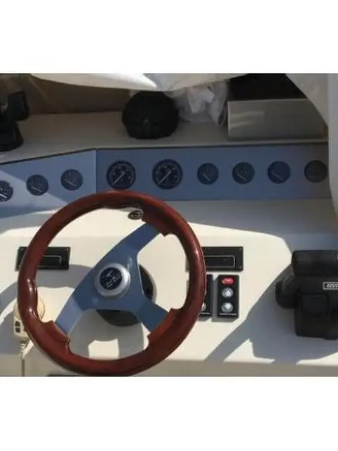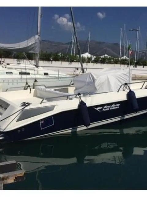 Anno di costruzione: 2003 - Lunghezza f.t.: 8,20 metri - Larghezza: 2,50 metri - Motori: 2 X Volvo Penta kad 32 turbo diesel (170hp) - Ore di Moto: 540 ore - Capacità Serbatoi: 500 litri La barca è stata oggetto di refit completo: - Revisione ed aggiornamento impianto elettrico con impianto 220v da banchina, prese 220v per eventuali utenze di bordo e relativo caricabatterie. - Nuovo impianto audio con stereo Sony bluetooth e quattro altoparlanti Clarion - GPS Raymarine - Bussola sostituita - Radio Vhf fissa Icom installata in plancia - Illuminazione notturna del pozzetto con luci led - Ripristino di tutta la ebanisteria con relativa riverniciatura - Lucidatura scafo e coperta - Cuscineria nuova (2019) - Teli nuovi copricuscini e copriconsolle - Telo completo copriscafo mai usato - Verricello elettrico - Impianto doccia di prua e poppa - Totale rifacimento di tutta la insonorizzazione della sala motori - Sostituzione ryser 2019 - Revisione turbine - Revisione alternatori - Dotazioni entro le 12 miglia - Tagliando completo motori - 2 pompe di sentina di cui una con relativo automatico - Cuscineria prendisole di poppa e di prua come da foto - Rifacimento del Teak alla pedana di poppa e nuovo carabottino per la scaletta bagno - Batterie servizi e motori sostituite nel 2018 - Ripristino e lucidatura degli acciai