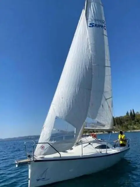 Vendesi barca vela modello Skippy 650 Cruiser, anno di costruzione 2007 in ottime condizioni, unico proprietario, completa di Randa e Lazy-Bag, Fiocco con avvolgitore (girella), Gennaker da armare su bompresso retrattile o su delfiniera, motore fuoribordo Johnson 4 HP con documentazione in regola, impianto elettrico con luci di via, dotazioni di sicurezza, 4 cuccette. Dati natante: lunghezza 6,50 mt. larghezza 2,50 mt. deriva mobile con bulbo in piombo, pescaggio 0,35/1,40 mt. carrellabile, albero abbattibile, ampio pozzetto con tavolino asportabile, cuscineria interna, solo lago. Lavori eseguiti antivegetativa maggio 2021. Visibile basso Lago di Garda Per informazioni Luca tel. 347-1350318
