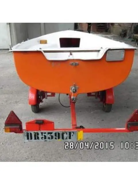 Barca a vela con tutto il corredo e carrello stradale piu alaggio remi e motore fuoribordo. lunga m.3.80