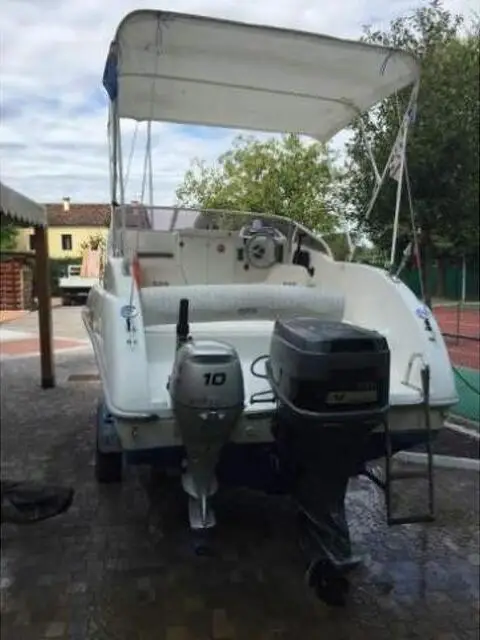 Vendo barca costruita nel 2004 ed usata solo nelle ferie estive. Perfettamente in ordine, manutenzione motori e verniciatura antivegetativa tutti gli anni. Ricoverata sempre al coperto nel capannone. Fornita di copertura intera invernale e di copertura solo pozzetto per tenerla in darsena in estate. Telaio con copertura "anti-sole"per pozzetto che si può usare anche in navigazione. Sali/scendi ancora elettrico, profondimetro ed ogni altro accessorio necessario per navigazione entro le 12 miglia. Doppio serbatoio benzina con 150 litri di stoccaggio e piccolo serbatoio da 10 litri per motore emergenza. Motore principale Suzuki da 100 cv e motore ausiliario Honda da 10 cv (praticamente mai usato). Letto 2 posti e servizio wc. Barca poco usata e da venire a vedere. Ho scontato il prezzo rispetto agli annunci precedenti perche ricevevo offerte vantaggiose ma a pezzi (solo barca-solo motori-solo accesssori etc etc) ma e mia intenzione venderla intera e perfettamente funzionate come la usavo io e compreso il carrello omologato per il trasporto. Grazie
