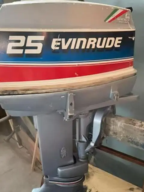 Barca motore e carrello stradale Barca da refittare Motore evinrude 25 con documenti Carrello stradale da revisionare ma pronto