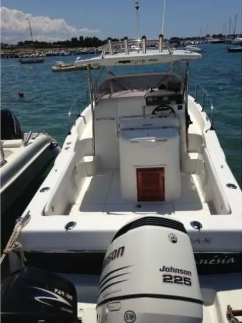 Vendo Bimax 730 genesi, con fuoribordo Johnson 225 cv. 4t, tutto anno 2008, pochissime ore di moto. Barca accessioriatissima, lunghezza 7,50 mt oltre 80 cm di plancetta a poppa. Adatta tanto alla pesca quanto al diporto grazie al pozzetto libero e squadrato ed a una ampia zona prodiera con cuscineria e ampi spazi prendisole. accessori fondamentali: - Motore ausiliario 25 cv 4t; - Hard top acciaio con 4 portacanne - verricello salpancora elettrico 50 mt catena - wc marino, e lavandino - stereo marino - vhf - bussola - termometro analogico - flaps elettrici - gps cartografico - ecoscandaglio Humminbird - doccetta - serbatoio carburante 200 lt / acqua 100 lt - 3 pompe sentina elettriche automatiche - 2 batterie