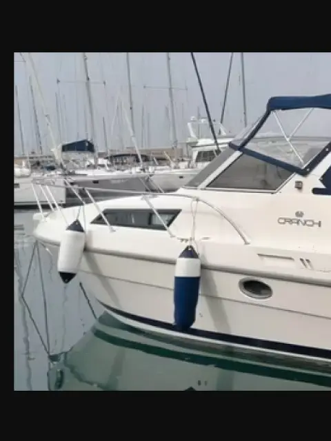 Cranchi 32 Cruiser. 2 motori entrofuoribordo Volvo Penta turbo diesel 3.950 centimetri cubi modello AD41B (200 HP ciascuno). Ecoscandaglio Lowrance HDS 12. Spiaggina di poppa allungata per ospitare il tender 4 batterie nuone montate nel 2023. Impianto elettrico 12/220 V con presa banchina e cavo lungo. Salpa-ancora elettrico, ancora con catena (30 m) Tendalini a campeggio fatti interamente nel 2023 2 cabine matrimoniali separate 2 TV perfettamente funzionanti.; dinette trasformabile in letto cucinino interno con lavello, due fuochi, frigo e forno a microonde; bombola gas in gavone esterno separato. Locale toilette separato da porta con WC lavabo e doccia Doccetta esterna Lunghezza, con spiaggina e delfiniera 11 metri circa; larghezza 3,48 metri Dislocamento 4200 Kg Tender senza motore Natante non targato libretti motori in regola Visibile presso Porto di Vibo Marina Prezzo leggermente trattabile Tel.3346211017
