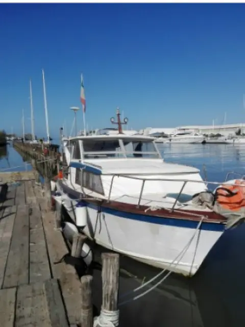 scafo in compensato marino e ordinate completamente rifatto due anni fa motore ford diesel 80 cv perfetto cuccetta anteriore matr. bagno cucina frigo dinette salpaancora gavoni carica batt. pannello solare ecc. Pronta alla boa .Metti in moto e parti. Visibile a Roma lidi di Ostia