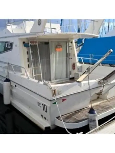 DELLAPASQUA DC 10 S Anno: 1994 Potenza: 300 CV Bussola, Ecoscandaglio, GPS, Boiler Dellapasqua Dc 10S del 1994, visibile in Emilia Romagna, lunghezza 11mt, larghezza 3,60mt, registrata bandiera italiana, 2 motori Caterpillar da 300hp linea d'asse diesel con 890 ore di moto (manutenzioni regolari e pronta alla boa per prova a mare e vs perizia). Disposizione: cabina armatoriale con letto matrimoniale, cabina con letto doppio in piano, cabine piccola con letto singolo. Accessori compresi: salpa ancora elettrico, generatore di corrente, passerella idraulica, caricabatteria e batterie, GPS e profondimetro, radar e monitor. Cucina con fornelli, frigorifero, lavandino. Teli di copertura e cappottina, telo invernale. Inoltre riscaldamento, radio stereo CDm scaletta bagno, tavolo in pozzetto, televisione a colori. I materassi sono completamente nuovi e mai usati, pavimenti interni in teak (sostituita la moquette), due frigoriferi e tra batterie nuove. Bussola, Contamiglia, Ecoscandaglio, GPS, Pilota automatico, Radio VHF Autoclave, Autogonfiabile, Batterie, Doccia esterna, Flap idraulici, Gruette, Piattaforma, Pompa di sentina automatica, Porta ingresso, Pozzetto Teak, Presa 220V banchina, Raddrizzatore, Salpa Ancore Elettrico, Scaletta da bagno, Tavolo pozzetto, Tromba, Boiler, Prese interne 12v, Prese interne 220v, Altoparlanti, Impianto TV, Stereo, Frigorifero interno, Microonde, Cuscineria completa, Tendalino