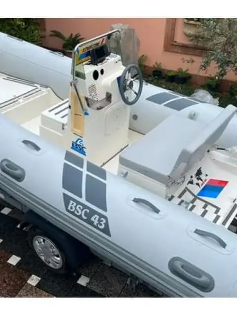 Gommone Bsc 43 condizioni pari a nuovo, perfetto in ogni sua parte , nessuna perdita, riparazione o scollatura, cuscini nuovi sia a poppa che a prua, vano porta ancora ed altro vano oltre a prolunga di prua, timoneria nuova, luci di navigazione e 360, scala inox di risalita, gps/eco garmin , telo di copertura in Pwc su misura (che mantiene areazione e evita le macchie di muffa su tubolari). Qualsiasi prova.