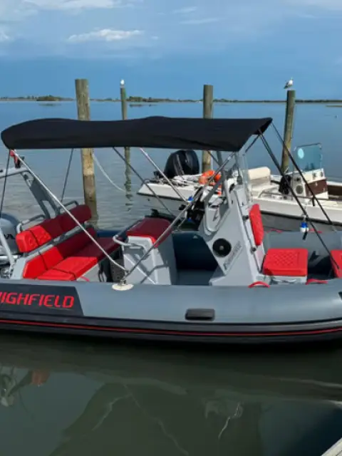 Battello highfield 500 motorizzato Honda 80hp tutto 2018. tendalino sole inox, garmin eco-gps,timoneria idraulica,cuscineria,telo copertura totale,impianto stereo,rollbar con luci di navigazione e faro di profondità. Battello in ottime consizioni. Richiesta 21.000,00 euro carrello non incluso
