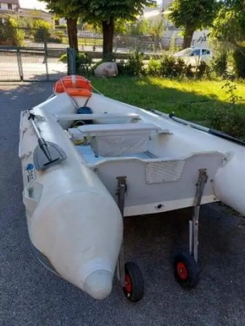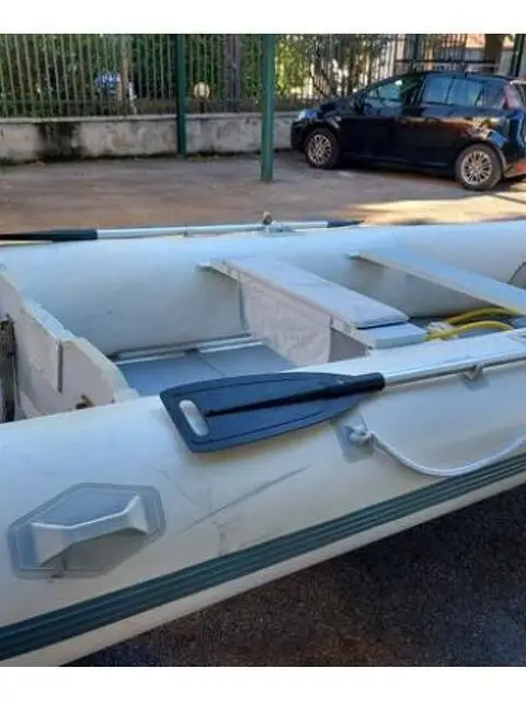 Gommone smontabile con paiolato rigido in alluminio composto da 4 pezzi smontabile. Il gommone è facilmente trasportabile. Include corda per ancora,ancora,giubbotto salvataggio, ciambella salvataggio,rotini con portavanne per la pesca,pompa manuale e pompa elettrica a 12 volt. Rispondo a tutte le domande.