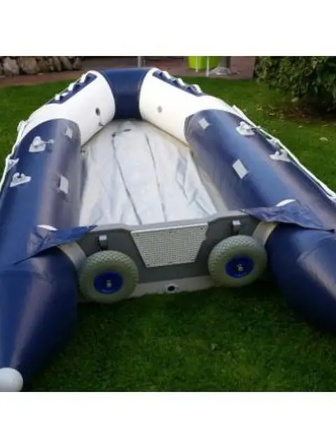 Gommoni prodotti in Nylon con supporto in pvc triplo strato armato ad alta densità, 1100 Denier * Buona fattura - materiali di alta qualità * Elevata stabilità grazie alla chiglia a V * Elaborato design a due toni * Rinforzo extra-protettivo lungo tutto il perimetro * 4 valvole ad alta pressione interni da incasso * Valvola di sovrapressione per la vostra sicurezza - Due anni di garanzia - Dichiarazione di conformità - Certificati CE CATEGORIA C Dimensioni: L = 3,80 m B = 1,70 m Peso max: 680 kg Peso netto: 80 kg Numero di persone: 6 Motore max: 20 PS Camere d'aria: 3 + 1 Paiolato in alluminio Valvole Trouble Shooting Parabordi - Scalmi girevoli - 4 maniglie - 2 remi - 1 panca - D-ring di prua - 2 traino - Splash di protezione Articolo nuovo in imballo originale - mai usato Spedizione in tutta Italia con corriere espresso Consegna In 5 gg lavorativi ca.