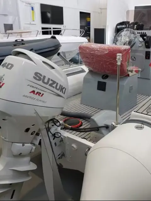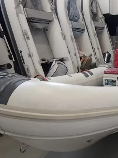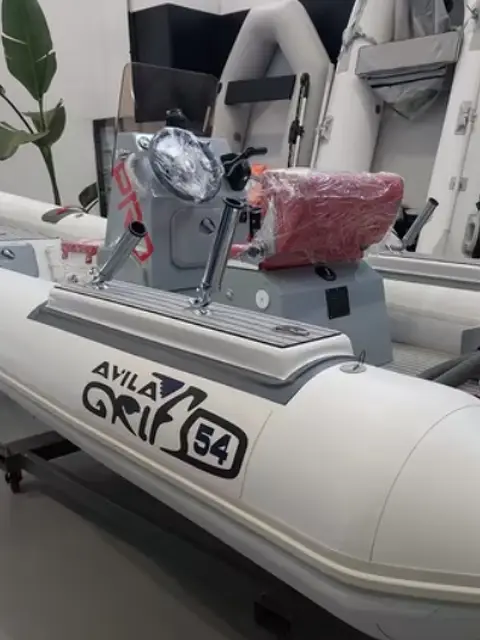 GOMMONE AVILA GRIFO 54 COMPLETO DI MOTORE FUORIBORDO SUZUKI 40/70 ARI. Possibilità di altre motorizzazioni CARENA MILITARE, SOLO PER INTENDITORI! LUNGHEZZA 5,40 LARGHEZZA 2,30 PESO 450KG 2 X CALPESTIO IN VETRORESINA 2 X PORTACANNA ANT. PLASTICA 2 X PORTACANNA POST. IN INOX STRUMENTO TRIM STRUMENTO C/GIRI STRUMENTO CARBURANTE POMPA DI SENTINA LUCI DI VIA LUCE 360° Gommone Grifo 54 avant limited edition. Progettato per impieghi severi è praticamente indistruttibile e in grado di garantire standard molto più elevati rispetto a un normale prodotto da diporto. La classe Grifo rappresenta una serie di battelli costruiti espressamente per il lavoro, ma questo non ne impedisce l'uso diportistico. Sono natanti costruiti con una struttura più semplificata e robusta pur rimanendo immutato l'impianto qualitativo di base che garantisce le eccellenti caratteristiche di navigazione e sicurezza tradizionali del cantiere Avila e caratterizzate dalla stratificazione a sandwich e dalla struttura della carena dalla robustezza militare. Omologazione fino a 180 cv per una potenza così elevata ha una spiegazione semplice: l'opera viva è stata progettata per elevate prestazioni e il tipo di costruzione realizzata completamente in vinilestere che garantisce una elevatissima robustezza. Dotazioni: Consolle - Stand-up - Cuscineria completa - Parabrezza in Lexan anti uv - Luci di via - Tientibene inox e in tessuto gommato - Gavone ancora - Gavone prua - accesso consolle - accesso stand-up - Gavone di poppa - Blower - Pompa di sentina - 2 anelli di forza sullo specchio di poppa - 1 anello di forza a prua - 3 bitte- trincarini con porta canne regolabili- Ghiacciaia fronte consolle a seduta - rigging per motore Suzuki (strumenti, manetta, chiave accensione) Timoneria meccanica, bussola racing e pavimento in schiuma Eva.