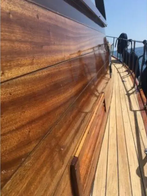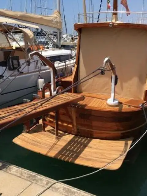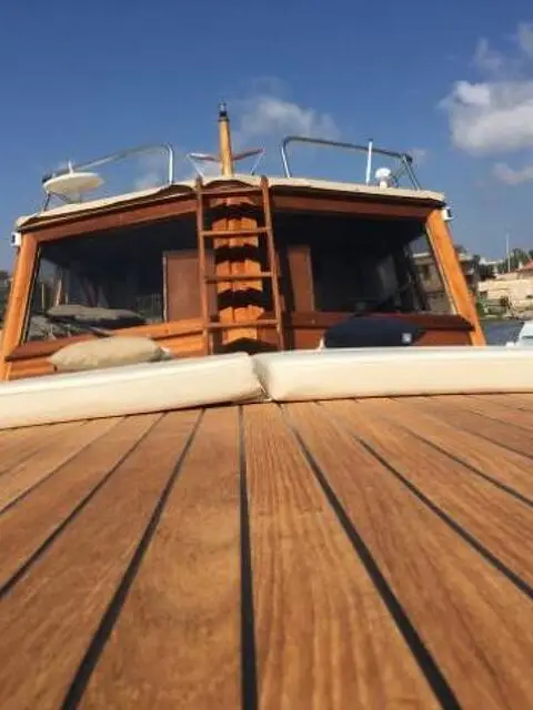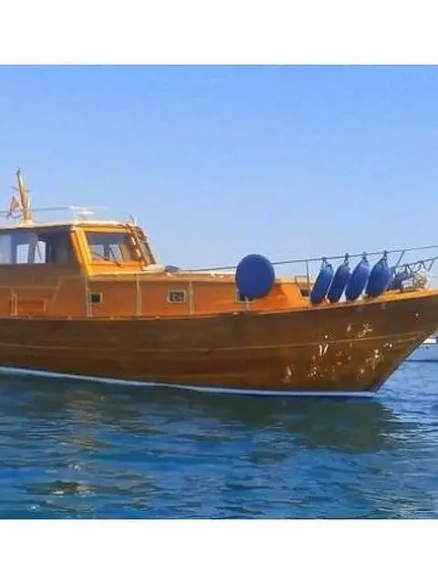 Gozzo Cabinato in legno del Cantiere Navale Fratelli Mileo Completamente restaurato nel Giugno del 2016 BARCA UNICO ESEMPLARE , BELLISSIMA PERFETTA , NON CI SONO LAVORI DA FARE Visibile in acqua a Civitavecchia ( ROMA ) Possibile qualsiasi prova Gru sul posto Dimensioni lunghezza 11,60 mt - larghezza 3,30 mt - peso 9,72 tonnellate Barca in fasciame di Mogano e Teak Barca con 1 cabine con 1 bagno Barca con cucina interna e doppio frigo Totale posti letto 6 Motore entrobordo : 1 Volvo Penta 240 hp Ore di moto : 1170 h Carburante : Diesel Velocità di crociera 8 kn Velocità massima 10 Kn Equipaggiamento per la navigazione : luci per la navigazione, bussola, profondimetro, doppio GPS cartografico, impianto VHF, pilota automatico, elica di prua BOW TRUSTER Manutenzione ordinaria e straordinaria GIUGNO 2016 Trattamento antivegetativo GIUGNO 2016 TRATTATIVA RISERVATA Tel 348 9265124