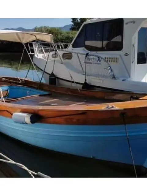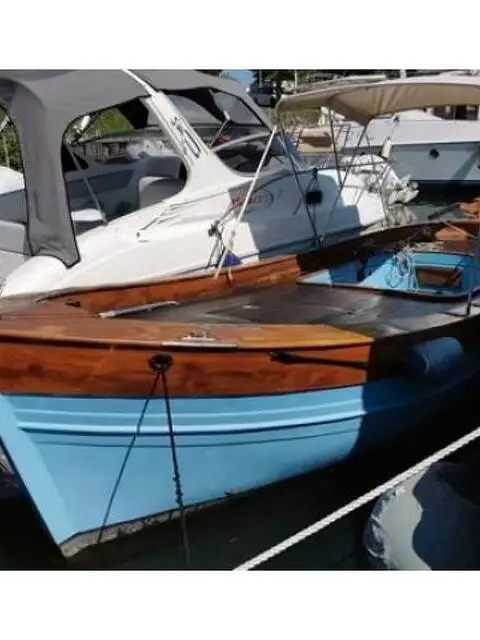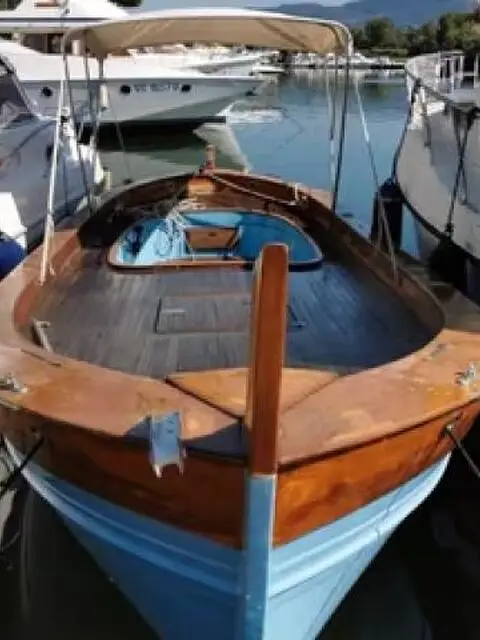 Gozzo ligure vetroresina, realizzato da cantiere Bocca di Magra nel 2005 su nostre specifiche, m..6,60 , autosvuotante, pompa di sentina, doccia, ponte e pozzetto in tek, timone, fascioni e passamaneria in mogano, tendalino. Motore seminuovo Nanni diesel del 2018, 22cv, 3cil., 1123 cm3.