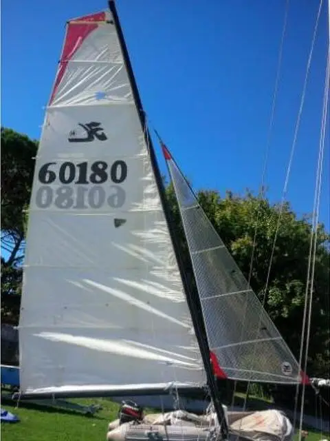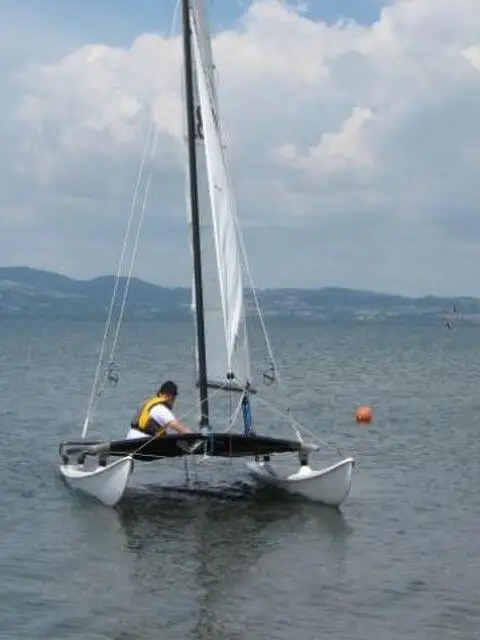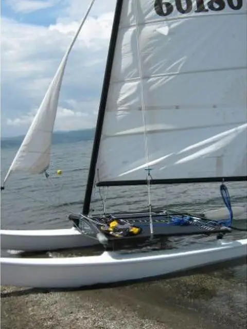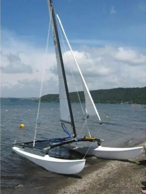 BARCA a vela katamarano modello hobie-cat 14 in buono stato vendo comprensivo di rimessaggio per il 2016, di carrello per la messa in acqua e di pallone testa.Fiocco nuovo appena sostiutito. Visibile presso il circolo del lago di bracciano. Gianfranco