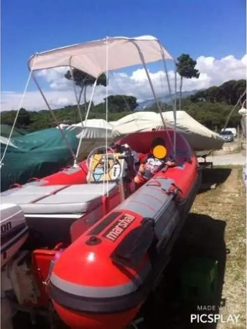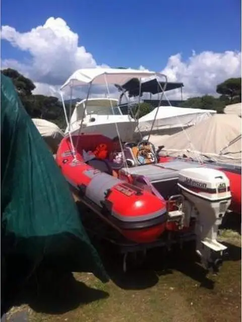 Gommone 4,5 m con motore johnson 40 cv 2 tempi con miscelatore perfetto, impianto elettrico nuovo, sempre fuori dall'acqua, usato pochissimo con ecoscandaglio, tendalino, 2 serbatoi originali da 20 lt l'uno e tutte le dotazioni obbligatorie. Visibile al rimessaggio Marchini vle delle pinete Carrara