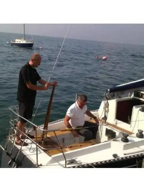 Bellissima imbarcazione modello "Pierrot", cantiere "Mariver", progetto Sciomachen, tenuta in ottime condizioni, lunghezza fuori tutto 9,20 mt, lunghezza al galleggiamento 7,47 mt, baglio max 3,06 mt, tipo di chiglia fissa, pescaggio standard 1,68 mt, dislocamento 2800 kg, riserva acqua 150 lt, riserva gasolio 35 lt, superficie velica 48,70 mq (no patente nautica), randa 16,40 mq, genoa 32,30 mq, Motore diesel marca Lombardini LDW 602 M,17 CV, consumi ridottissimi, tenuto in ottime condizioni (qualsiasi prova), velocita di crociera 5.0 nodi, motore poco rumoroso. Lavello, 2 fuochi, toilette con lavabo e wc, dinette trasformabile con 2 posti letto, 1 cuccetta a poppa, cabina separata doppia dell'armatore matrimoniale a prua, per complessivi 5 posti letto, vhf, due batterie (nuove) di cui una relativa ai servizi e l'altra all'accensione del motore, tutto l'equipaggiamento obbligatorio per la sicurezza in navigazione entro 3 miglia. Genova rollabile su avvolgifiocco Selden, genoa in dacron, due fiocchi e una tormentina usati pochissimo, randa kevlar steccata, randa dacron, lazy bag. Invaso per il rimessaggio invernale. Barca, facile, sicura, con ottime caratteristiche boliniere, ideale sia piacevolissime crociere a lungo raggio, che per regate competitive. L'imbarcazione e sana, prezzo trattabile e si trava a Castelletto di Brenzone, Lago di Garda, per info 339 7493278