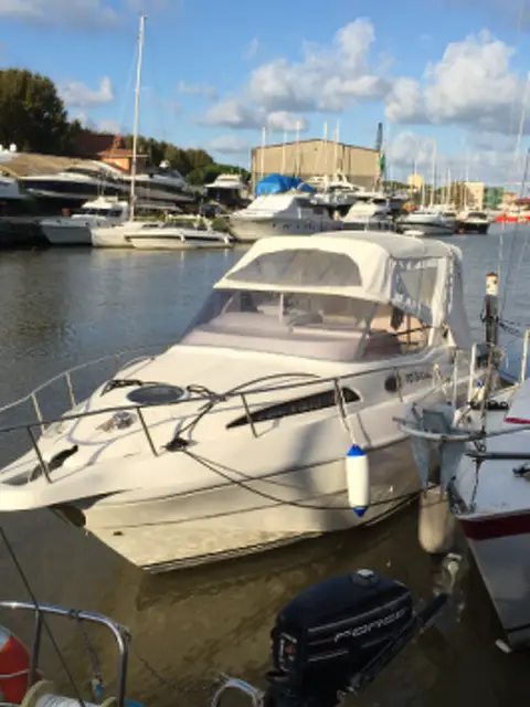 ... RIO 750 CRUISER .... Stato: usato Lunghezza ft: 8,44 mt Larghezza: 2,70 mt Nr cabine: 1 Nr posti letto: 2 posti letto di prua e 2 posti letto in cuccetta di poppa Portata persone: 8 Serbatoio acqua dolce: 140 LT Serbatoio carburante: 360 lt Categoria ce: B Bagno interno Motorizzazione: Mercruiser 2 x 3.0L Potenza: 2x 140 hp EFB - Benzina Anno motori: 2006 Accessori: doccetta esterna, ecoscandaglio, vhf e gps, stereo con casse interne ed esterne, tv, caricabatterie, boiler, cuscineria completa, copertura "camper" completa, fornello a gas 2 fuochi, tavolo esterno. Occasione: Euro 23.900,00 Commissioni escluse. Visibile presso la nostra sede di Loreto (AN) ..... DOMENICA APERTO SOLO SU APPUNTAMENTO .... I dati si intendono corretti ma non garantiti. La presente non costituisce, in nessun caso documento contrattuale.