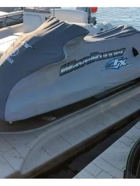 Yamaha FX HO Waverunner (modello Cruise), Jetski omologato per 3 persone. Acquistata nel 2017, Motore 1.8L Aspirato, molto potente, sviluppa 200cv circa, la sua velocità e' veramente elevata (62 nodi). Il motore e' silenzioso ed essendo aspirato con 200cv non consuma una follia come i modelli turbo (inutili), inoltre e' ben più affidabile. La mia esperienza con questa moto e' stata eccellente, le ore motore sono solo 103, (complessivamente usata molto poco), mai incidentata, mai affittata, solo uso privato. La vendo per passaggio a gommone, sono diventato padre e il jetski non e' più fattibile. La moto e' pronta per la stagione 2021, si trova in Cantiere ad Olbia al coperto. Modifiche eseguite: nel 2019 cambiato colore alla sella (adesso bicolore: nero e bianco, prima era grigia), aggiunti nel 2019 adesivi bianchi frontali (modello racing). Batteria nuova cambiata nel 2020. Telo waverunner acquistato contestualmente con la moto. Il carrello che si vede nella foto NON e' incluso.