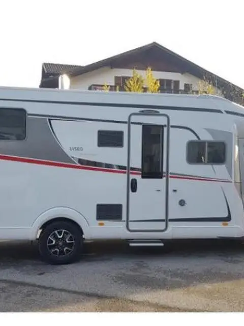 Veicolo nuovo Meccanica: Fiat Ducato Classe di emissione: Euro 6d Temp Alimentazione: Diesel Lunghezza: 749 cm Larghezza: 230 cm Altezza: 295 cm Peso massimo: 3.500 kg Posti omologati: 4 Posti letto: 4 Dotazioni speciali del veicolo: - Pacchetto Premium Lyseo TD Privilège - Variante motorizzazione 140 CV, Euro 6d Temp - Serbatoio carburante 90 l - Volante e leva cambio in pelle - Fendinebbia - Climatizzatore automatico nella cabina autista - Letto basculante elettrico sopra la dinette centrale
