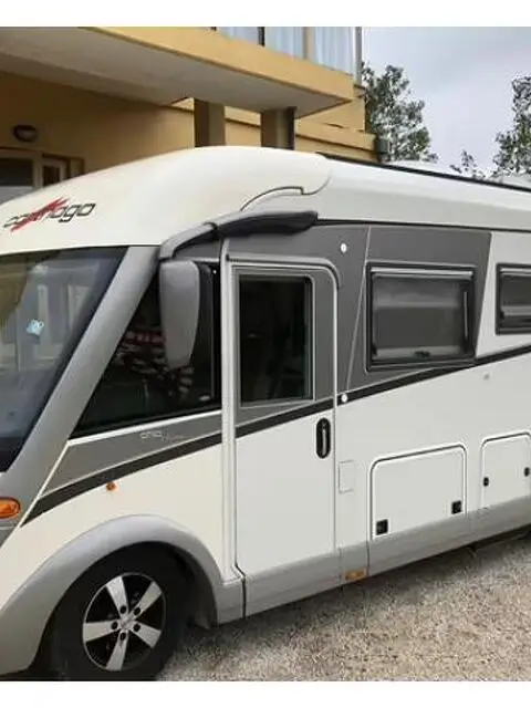 Vendo Camper Carthago Chic- C Line Motorizzato 3000 Ducato cambio automatico Patente B omologato 4 posti viaggio, km. 90.000 Accessori: Riscaldamento tutto pavimento a gas e riscaldamento a gasolio. Doppie batterie al litio muove, due pannelli solari, antenna satellitare con decoder e Sky, due televisori, impianto piedini auto livellanti idraulici, deumidificatore Viesa, serbatoio gasolio inox da 180 lt., serbatoio acqua inox da 100 lt. , serbatoio gas inox da 50 lt. , con attacco rapido per rifornimento, attacco per allacciamento fonte gas esterna, doppio treno di gomme e cerchi invernali e estive, inverter da 3 kw per 220 V, autoradio Piooner Bluetooth, fari anteriori led, moquette, tendalino mt. 3,5, telecamera posteriore.