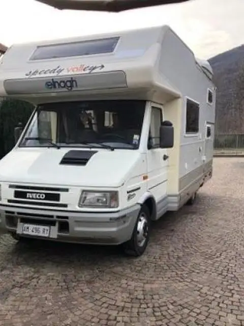 Camper Iveco Daily mansardato con gancio traino. Anno 1997 2800 cc Gemellato 5 posti per viaggiare e 7 posti letto pannello solare generatore per la 220 V sospensione pneumatiche veranda , porta bici, due serbatoi per l'acqua , 2 dinett, forno Gomme 80% di buono Per vedere più fotografie scrivetemi su whatsapp