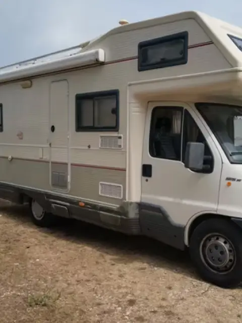 CAMPER INTERNATIONAL (CI) ELEGANT 480 su FIAT DUCATO MAXI 2500 TDI, maggio 1997, 106000 Km. Omologato per sei, 6 posti letto (letto matrimoniale posteriore con dinette a ferro di cavallo, ampia dinette centrale trasformabile in altro letto matrimoniale e mansarda con terzo letto matrimoniale), finestre Seitz, tendalino Fiamma 4,5 metri, doppio serbatoio (100+80 litri) acqua chiara/potabile, doppio serbatoio acque grigie, WC con cassetta THETFORD, doccia separata con porta a soffietto, rilevatore gas, inverter, stufa combi 6000 canalizzata, stereo CD Alpine con navigatore satellitare incorporato, oblò centrale con turboventola, moquette removibile pavimento per mesi invernali, antifurto con blocco motore, tetto calpestabile con portapacchi, antenna tv, pannello solare per batteria servizi e batteria motore, strisce led nelle varie zone giorno/notte, luce/led esterna notturna, attacco doccia esterna. Trattabile.
