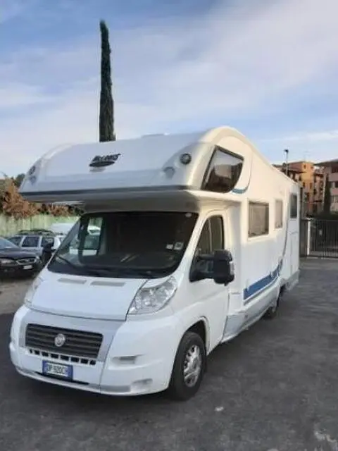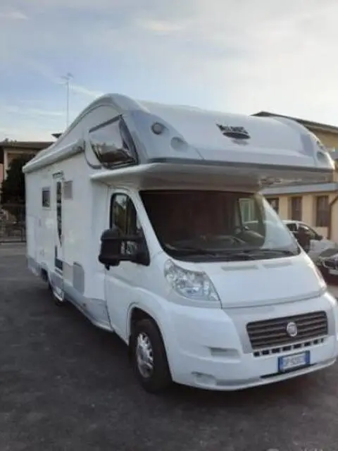 Camper mansardato su meccanica Fiat Ducato 2300 cc multijet, 6 posti letto con ampio garage e letto matrimoniale posteriore e in mansarda, telaio rinforzato per trasporto scooter, super accessoriato tra cui: o Frigo trivalente 160 lt, funzionate con 220v, 12v e gas o Cucina con quattro fuochi o Scaldavivande o Forno o Cappa aspirante o Oblò panoramico o Turboventilatore o Inverter o Doppio serbatoio acqua o Antenna satellitare mobilsat o Tv LCD o Antenna digitale terrestre o Pannello solare o Generatore di corrente con motore benzina o Triogas o Impianto riscaldamento centralizzato o Sospensioni pneumatiche ALKO o Antifurto perimetrale con radar o Prese esterne di corrente, gas, acqua e antenna o Climatizzatore gabina o Luci interne a led o Ampia veranda esterna o Finestre SAIZ o Catene da neve o Piccola cassaforte nascosta o Doppia batteria servizio o Rivestimenti pavimento in moquettes in cellula o Bagno con doccia separata o Telecamera posteriore con monitor