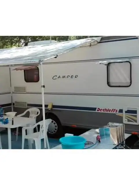 Dethleffs 550 modello CAMPER, 6 posti letto di cui 2 nel letto a castello in coda, 2 nella dinette centrale e 2 nel letto matrimoniale, il caravan comprende boiler elettrico, aria condizionata, tendalino e pareti laterali. Per altre info solo contatti telefonici, le mail non verranno lette. Massimo