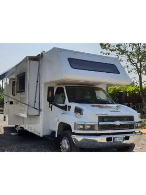 Chevrolet Motorhome anno 2008,lungo 10.2 metri, particolarmente adatto a chi è un appassionato di pista, tipo velocità Kart motocross eccetera, ha la parte posteriore col garage dove si possono caricare più moto e attrezzatura, 5 posti letto, impianto elettrico 220 e 12 volt, pannelli solari, antenna satellitare, frigo trivalente, riscaldamento sia a gas , scalette elettriche, piedini stabilizzatrici che sono in grado di sollevarlo , si possono cambiare le gomme senza cric, tenda lunga circa 10 m, gomme nuove motore perfetto circa 14000 miglia, slide che si aprono sia destra che sinistra in posizione di riposo sembra una camera di casa, fornelli e lavello a scomparsa Bagno completamente nuovo come tutto il resto dell'arredamento, motore diesel V8, gommato nuovo, illuminazione sia a led che 220, inverter per poter avere la corrente 220 anche durante il viaggio, da vedere richiesta : 45000 , valuto permuta con camper semintegrale o furgone patente B, per informazioni info@gullyracing.it oppure 3939403711