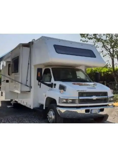 Chevrolet Motorhome anno 2008,lungo 10.2 metri, particolarmente adatto a chi è un appassionato di pista, tipo velocità Kart motocross eccetera, ha la parte posteriore col garage dove si possono caricare più moto e attrezzatura, 5 posti letto, impianto elettrico 220 e 12 volt, pannelli solari, antenna satellitare, frigo trivalente, riscaldamento sia a gas , scalette elettriche, piedini stabilizzatrici che sono in grado di sollevarlo , si possono cambiare le gomme senza cric, tenda lunga circa 10 m, gomme nuove motore perfetto circa 14000 miglia, slide che si aprono sia destra che sinistra in posizione di riposo sembra una camera di casa, fornelli e lavello a scomparsa Bagno completamente nuovo come tutto il resto dell'arredamento, motore diesel V8, gommato nuovo, illuminazione sia a led che 220, inverter per poter avere la corrente 220 anche durante il viaggio, da vedere richiesta : 45000 , valuto permuta con camper semintegrale o furgone patente B, per informazioni info@gullyracing.it oppure 3939403711