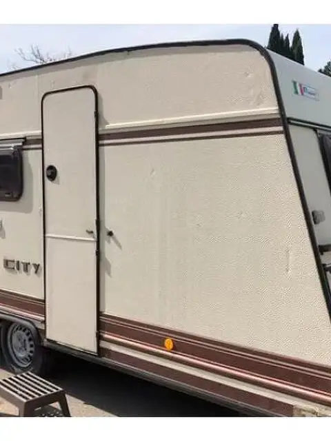 Roulotte Bürstner City 450, anno 1985, in buone condizioni. Cinque posti letto, dinette matrimoniale, letto a castello. Con veranda e cucinotto. Anno di immatricolazione 1985 Peso complessivo 820 kg Lunghezza 586 cm