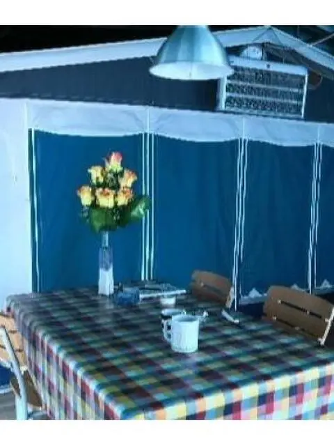vendesi roulotte camperizzata fissa presso il camping spina village del lido di spina composta da matrimoniale e letto 1 piazza e mezzo bagno completo veranda xxl con camera matrimoniale e divano letto matrimoniale ulteriore soggiorno e cucina americana sotto la tensostruttura e veranda tutto coperto per totale 80 metri chiuso da teli cristal vicino ai bagni zona cani