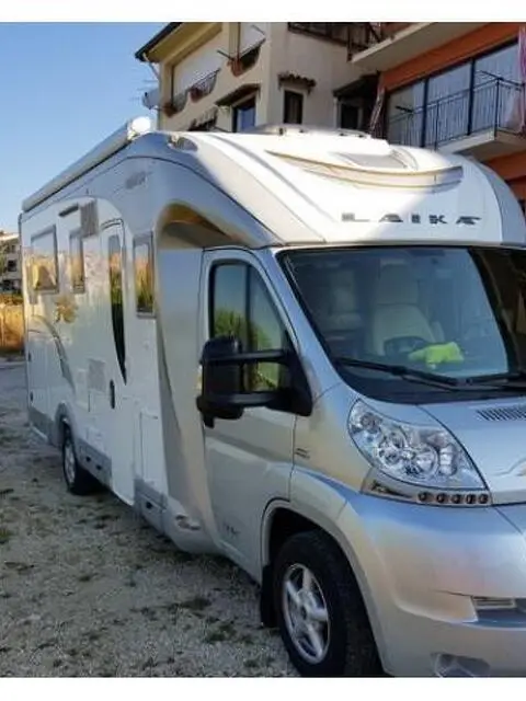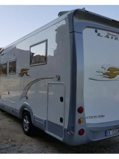 Laika KREO 5012 serie speciale cabina argento disposizione con matrimoniale in coda nautico uguale al letto di casa con porta che divide camera da letto con bagno privato e basculante davanti elettrico.Mezzo spettacolare motore 3000 cc 180 CV con 63000 km del 2012 con un'infinità di accessori. Cerchi in lega Doppio pavimento con gavoni interni Telaio Alko Riscaldamento Alde Doppi serbatoi Doppio Clima Parabola automatica Doppia tv impianto centralizzato Doppio Tetto panoramico Doccia separata con idromassaggio e sedile Batterie gel Pannello solare Garage ampio con mobili Laika e cassetti Radio doppio din Fari led Interni il pelle bianca E tanto altro tagliando appena effettuato e gomme nuove Prezzo 59000 € Tel 3478688214