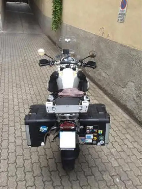 offro Bmw R 1200 GS Enduro Adventure cc 1170 immatricolata 2012 Agosto colore bianco Km 39 condizioni ottime Euro 14.500 trattabili Moto full optional, abs, controllo di trazione, manopole riscaldate, computer di bordo, controllo pressione pneumatici, sospensioni E.S.A., antifurto, paramotore,para cilindri fari supplementari, insomma tutto quello che si pu? avere pi? navigatore originale BMW con adattatore per utilizzo anche in auto, borse vario e alcune parti Tourateach come l'allargo del cavalletto, la piastra porta bagaglio e l'aletta aggiuntiva per il parabrezza. Vero affare, la vendo perch? non la sto pi? usando. Tagliando dei 40.000 km appena fatto con sostituzione delle pastiglie anteriori e in settimana far? anche la revisione, moto ASOLUTAMENTE PERFETTA!! Sempre tagliandata BMW. Pavia (PV)