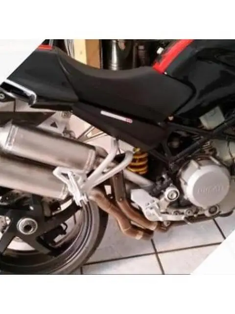 Ducati Monster S2R 800 anno 2006 Km 18000 circa Colorazione originale ducati nero con banda red tangerine Tenuta in maniera impeccabile sempre tagliandata e controllata in officina Ducati con libretti documentabili Svariati accessori aggiunti: Cupolino specchio fum Freccette piccole fum Parafango anteriore modello ducati performance in carbonio Scarico corto artigianale in titanio su base arrow omologato Airbox aperto Ducati Performance Filtro aria sportivo Ducati Performance Tegolino Posteriore in Carbonio modello Ducati Performance Specchietti modello end-bar Batteria Yuasa sostituita da pochi mesi, cambio gomme effettuato nel mese di luglio con Dunlop Qualifier 2 Sostituzione liquidi freni Regolazione CO su base scarichi e filtro aperto montato Prezzo 4.000 non trattabili Astenersi sognatori e affaristi Optional aggiuntivi compresi nel prezzo: Cavalletti moto per rimessa invernale o lavori di routine; Ragno per serbatoio; Staffa porta navigatore utile per viaggi moto; 2 Caschi di cui uno integrale con tutti gli optional e uno modulare ; Giacca moto in pelle Giudici praticamente come nuova. Verranno ceduti ovviamente tutti gli accessori originali, le due chiavi nere, chiave rossa e code card. Per info o foto contattare telefonicamente.