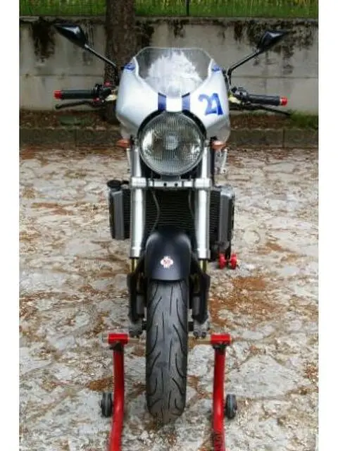 DUCATI MONSTER S4R IMMATRICOLATA IL 28.04.2006 KM PERCORSI 18.200 DISTRIBUZIONE, TAGLIANDO E SOSTITUZIONE PASTICCHE FRENI ANTERIORI E POSTERIOSI ESEGUITI A 15.700 KM. SOSTITUITI A SETTEMBRE 2015 BATTERIA E REGOLATORE DI TENSIONE (ENTRAMBI RICAMBI NUOVI E ORIGINALI DUCATI). GOMME AL 70% MARCA METZLER “RACETEC INTERACT” K2 AL POSTERIORE E K1 ALL’ANTERIORE. INTERNO DEL SERBATORIO VETRIFICATO PER EVITARE LA FORMAZIONE DI RUGGINE. SOSTITUITA LAMPADA LUCE ANABBAGLIANTE. SCADENZA REVISIONE: 31.05.2017 SCADENZA BOLLO: 31.01.2017 OLTRE ALLE VARIE PARTI IN CARBONIO DI SERIE PRESENTI SUL MODELLO, INCLUDO I SEGUENTI ACCESSORI: SCARICO COMPLETO TERMIGNONI (TARATI DA OFFICINA AUTORIZZATA DUCATI CON LA CENTRALINA ORIGINALE DUCATI); COPRIFRIZIONE IN ERGAL; LEVE (FRIZIONE E FRENO) IN ERGAL REGOLABILI IN SEI POSIZIONI; SPECCHIETTI COLOR CARBONIO; FRECCE BARRACUDA; CONTRAPPESI IN ERGAL; SELLA RICOPERTA IN ECOPELLE BICOLORE. NELLA VENDITA OVVIAMENTE INCLUDO LE PARTI ORIGINALI SOSTITUITE RAPPRESENTATE DALLO SCARICO COMPLETO, ENTRAMBE LE LEVE FRENO E FRIZIONE, LA COPERTURA DELLA SELLA, IL COPRI FRIZIONE E L’UNICO SPECCHIETTO SINISTRO (NON ORIGINALE CON LA QUALE VENIVA ACQUISTATA DAL SOTTOSCRITTO). LA MOTO E’ IN PERFETTE CONDIZIONI DI UTILIZZO E CONSERVAZIONE, MAI ANDATA IN PISTA E PARCHEGGIATA SEMPRE IN GARAGE DURANTE L’INUTILIZZO. C’E’ SOLO DA MONTARCI E ANDARE, NON CI SONO INTERVENTI DI MANUTENZIONE DI SORTA DA EFFETTUARE. VENDO CAUSA INUTILIZZO. ASTENERSI TUTTI I PERDITEMPO CHE VOLESSERO DISCUTERE IL PREZZO POICHE’ E’ EVIDENTE CHE LA VALUTAZIONE E’ PIU’ CHE VANTAGGIOSA. PER INFORMAZIONI TELEFONARE AL NR. 331/3651016 (MATTEO)