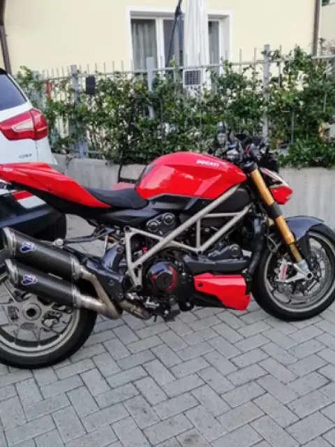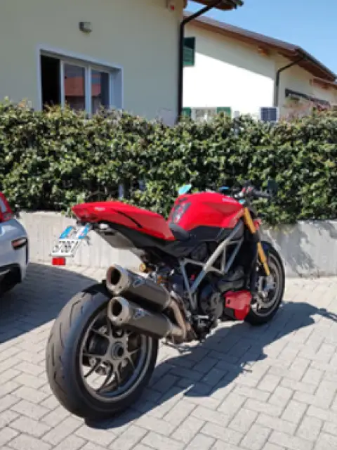 Ducati Streetfighter 1098 s del 2009 Km 32000 Tagliandata: cinghie, gomme, olio, catena corone pignone e pastiglie Vari accessori in carbonio Dp. Scarico termignoni e centralina Dp. Portatarga corto. Sella gel Dp. Borsa serbatoio Dp. Cupolino Dp. Parafango post e ant carbonio. Paracalore scarico carbonio Dp. Staffa scarico in carbonio non in foto. Tutti pezzi originali disponibili ovviamente. Non vendo accessori o scarichi a parte. Prezzo non trattabile. Non scrivetemi per offerte.