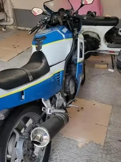 Vendo Yamaha fz 750 anno 1988 iscritta asi Bollo esente assicurazione 150 euro annui. Moto in ordine di tutto. Verniciata lo scorso anno. Motore 48.000km originali tutto revisionato Scarico in carbonio, catena corona e pignone nuovi, forcelle revisionate , gomme nuove ecc. Molti ricambi disponibili tra cui 1 motore nel prezzo. Niente da fare solo benzina e partire . Solo seriamente interessati . Non invio foto perditempo leggermente trattabile da vicino Prezzo 2.500€