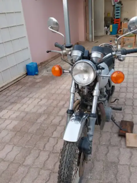 Motocicletta d'epoca. Buone condizioni. Non utilizzata da qualche anno. Meccanica perfettamente efficiente. Batteria da sostituire. Parti cromate con qualche difetto. Gomme in ottimo stato. Corona, catena ed altri elementi sostituiti con ricambi originali.