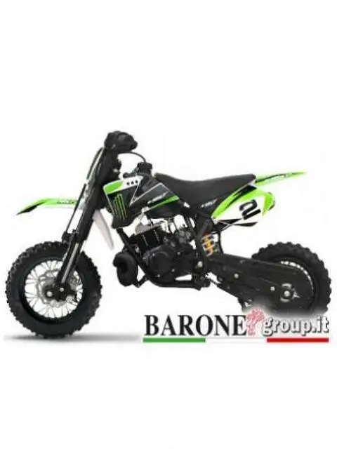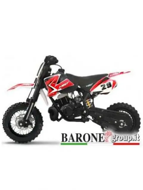 Mini Cross NRG 49 cc 10 10 Scheda Tecnica motore 2 tempi monocilindrico tipo FRANCO MORINI 9,5cv Cilindrata 50cc Alimentazione carburatore Capacità serbatoio 3,5lt carburante miscela 2% Accensione a pedivella Tipo di cambio automatico Trasmissione catena forcella a stelo rovesciato monoammortizzatore posteriore Dimensioni moto 135x62 altezza Peso medio 55kg Cerchi alluminio Pneumatici da 10'' Freno anteriore meccanico Freno posteriore meccanico accessori tuning compresi: - SCARICO SPORTIVO tipo KTM - DISPOSITIVO DI SPEGNIMENTO - CARTER DI PROTEZIONE SUL TOTALE GIRO CATENA - FRIZIONE CON MOLLE RINFORZATE - TELAIO COMPLETAMENE RINFORZATO - FILTRO ARIA SPORTIVO RACING - BLOCCHETTO START CON DOPPIA CHIAVE - SOSPENSIONI RINFORZATE cavalletto da pista estraibile Questo veicolo non è omologato alla circolazione stradale, ma va usato esclusivamente su spazi privati o su piste circuiti riservati. Permettere a dei bambini di guidare la moto soltanto sotto sorveglianza da parte di un adulto. Tutte le nostre Moto o quad non sono giocattoli, ma articoli sportivi. Sono costruite rispettando le normative CE e ISO9000, vengono sottoposte a continui controlli di qualità . Nota Bene: Prima di qualsiasi utilizzo del mezzo su strada verificare ed eventualmente stringere tutti i bulloni e i raggi delle ruote. L'Azienda declina ogni responsabilità per qualsiasi tipo di danni a cose e/o persone. In caso di ritiro in sede il prodotto verrà consegnato con una spesa aggiuntiva pari al costo vivo della spedizione.