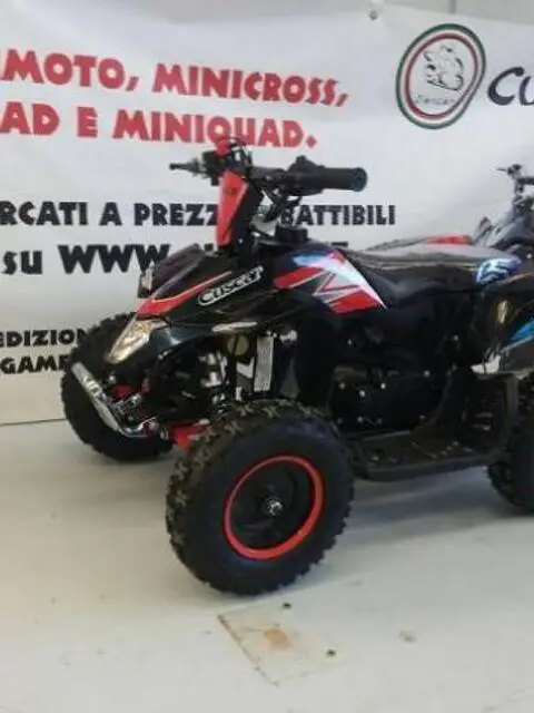 GARANZIA 4 ANNI E RICAMBI DISPONIBILI !!! spedizione gratuita in tutta italia pagamento alla consegna,bonifico,paypal Specifiche tecniche: - frizione a 2 molle rinforzate garantite 4 anni - avviamento a strappo facilitato - doppio scarico - regolatore di velocita' - ruote grandi da 6 pollici cross - correttore di coppia dispositivo per le salite - carter di protezione sul totale giro catena - frizione con molle rinforzate - telaio completamene rinforzato - filtro aria sportivo racing - blocchetto start con doppia chiave - ruote tacchettate - sospensioni a molla - 3 freni a disco - certificazione ce Descrizione tecnica: Dimensioni (LxPxA): 1060 x 600 x 670mm Motore: 49cc 2 tempi Avviamento: a strappo facilitato Dimensione delle ruote: 6" Serbatoio: 1 Litro Velocità massima: 45 km/h Peso massimo: 95kg Percorrenza: 50 km Dimensioni del cartone: 1020 x 620 x 440mm Freni: anteriore e posteriore a disco Sospensioni: 2 anteriori a molla 1 posteriore a molla minimoto mini cross mini quad pitbike moto cross quad omologato tapis elettrico fuoristrada casco integrale